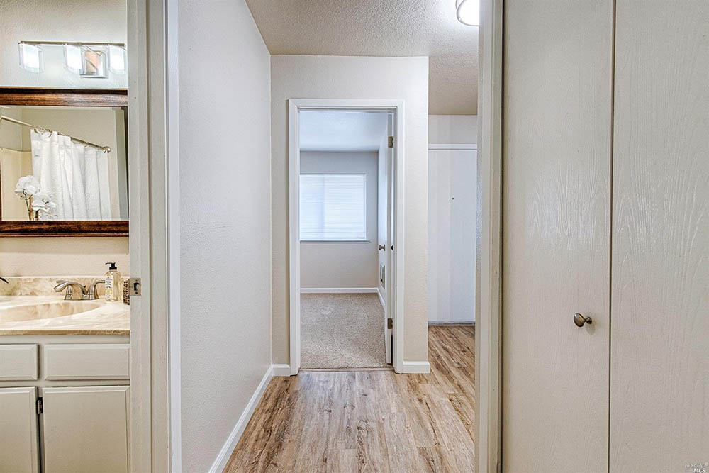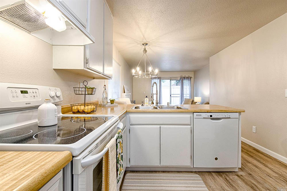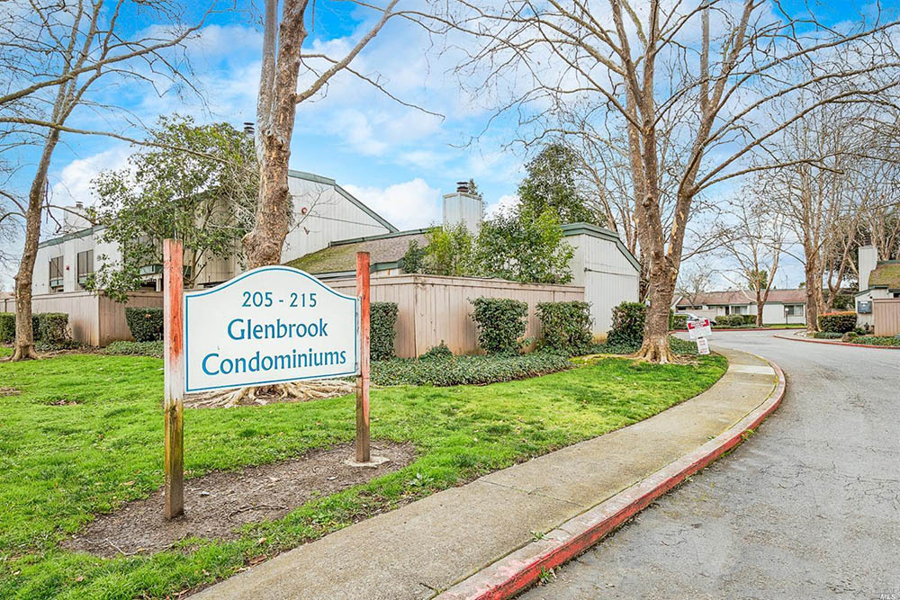 Rare, single level, end unit in private location – not to mention adorable! Stylish interior has been updated with new vinyl plank flooring, carpet and paint in decorator colors. Brick wood burning fireplace in living room provides cozy living space. Additional vanity in master bedroom. Private rear and front patios. Glenbrook Condominiums HOA offers pool, tennis courts and community laundry facility. Garbage, water and sewer are covered by dues. Conveniently located, close to Oliver’s Market, shopping and public transportation.
